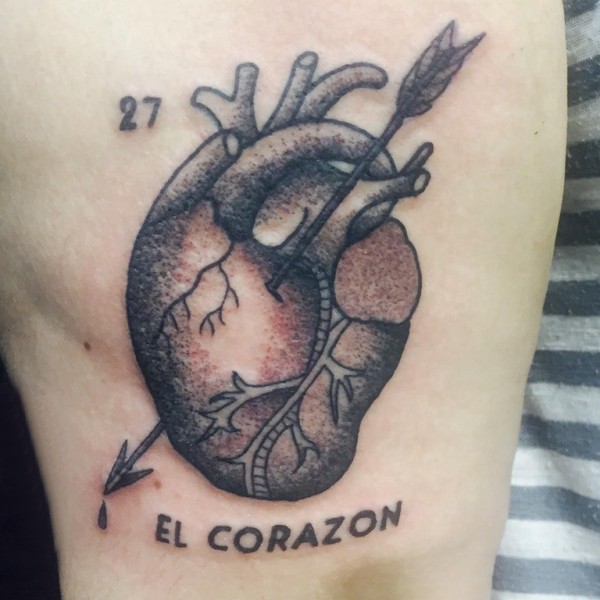 心脏纹身 英文 男生大腿上英文和心脏纹身图片