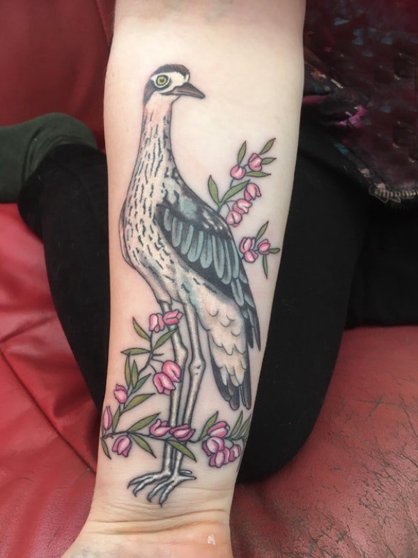 小动物纹身 女生手臂上花朵和鸟纹身图片
