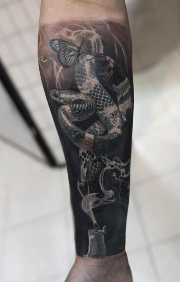 蛇纹身 图腾 男生手臂上蛇纹身图片