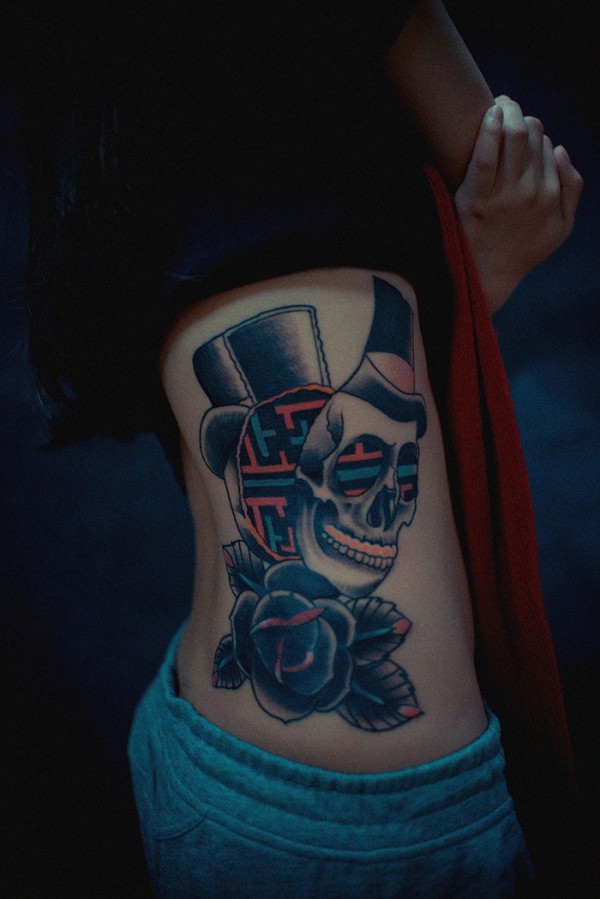 侧腰女骷髅刺青图案图片_骷髅纹身图案大全_纹身图吧
