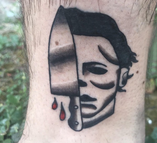 小腿对称纹身 男生小腿上匕首和人物纹身图片