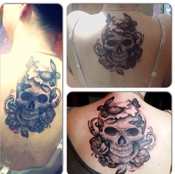 纹身骷髅头 女生背部骷髅纹身图片