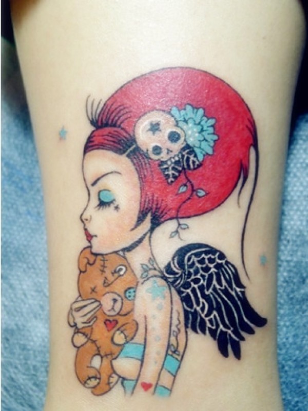 复古卡通红唇美女手臂纹身_卡通纹身图案大全_纹身图吧