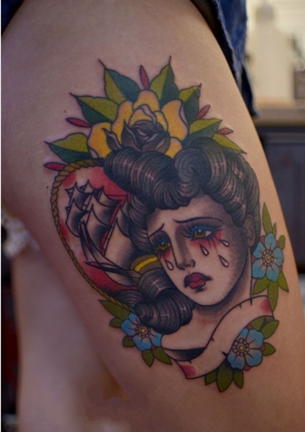 传统花腿纹身--18张传统风格的大花腿纹身图案作品