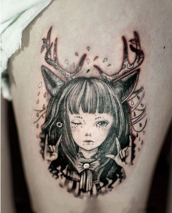 女孩腿部唯美刺青_腿部纹身图案大全_纹身图吧