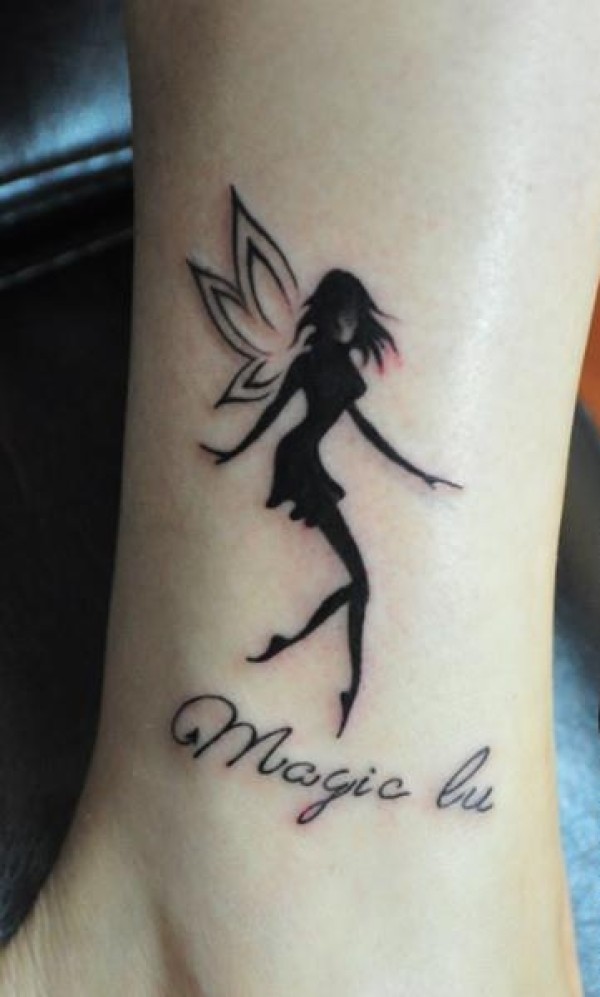 腿部唯美精灵纹身