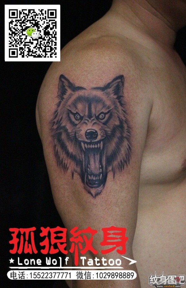 宝坻纹身 大臂狼头纹身 孤狼纹身工作室作品 天津