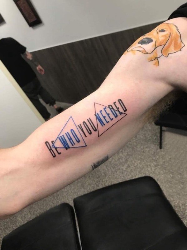 花体英文纹身 男生手臂上花体英文纹身三角形纹身图片