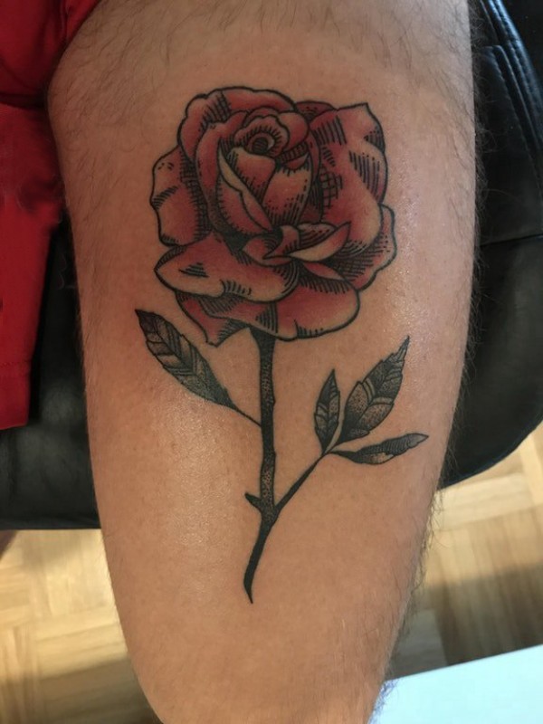 花朵纹身 男生大腿上文艺花朵纹身图片