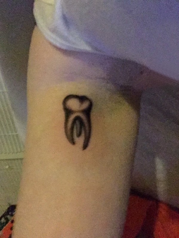 牙齿图案纹身 女生手臂上黑色的牙齿纹身图片
