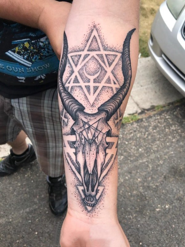 山羊头纹身撒旦 男生手臂上羊头纹身图案
