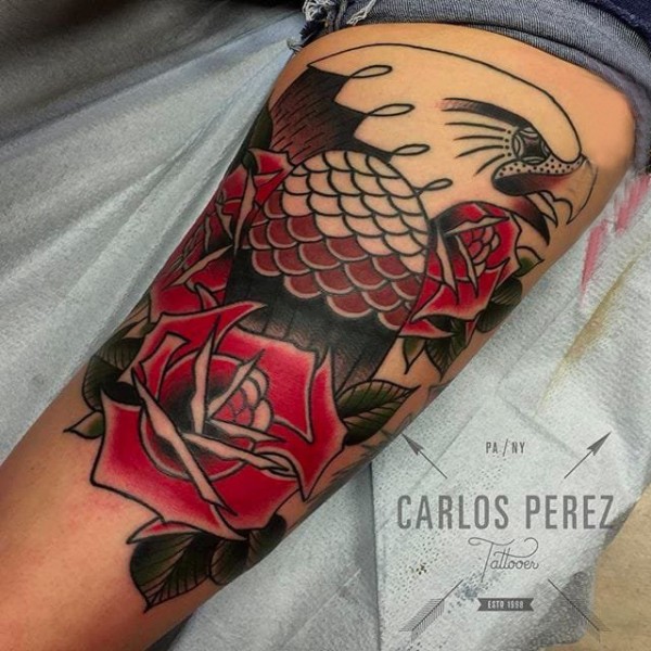 欧美玫瑰纹身 男生手臂上花朵纹身图片