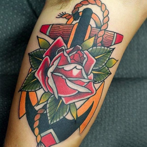 欧美玫瑰纹身 男生手臂上花朵纹身图片