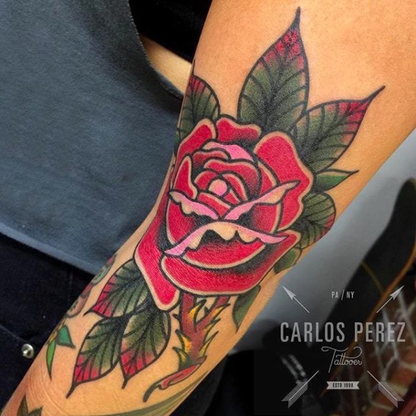 欧美玫瑰纹身 男生手臂上花朵纹身图片