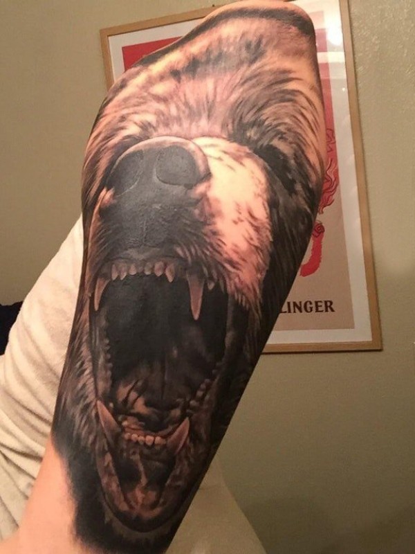 熊纹身 男生手臂上熊纹身动物图片