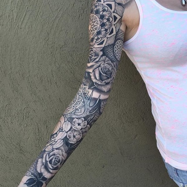 欧美玫瑰纹身 男生手臂上花朵纹身图片
