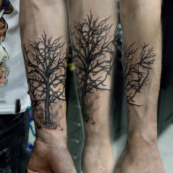 树纹身 多款黑灰纹身点刺技巧树纹身图案