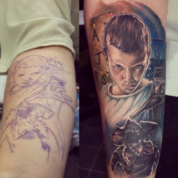 清纯女孩腿上可爱肖像纹身图片_肖像纹身图案大全_纹身图吧