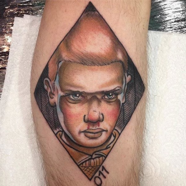 清纯女孩腿上可爱肖像纹身图片_肖像纹身图案大全_纹身图吧