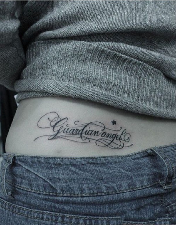 女生后腰纹身黑白灰风格抽象线条纹身图案