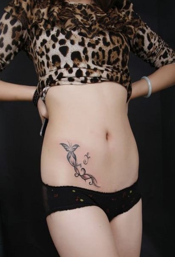 分享一款腰部时尚性感的蝶恋花纹身图案_腰部纹身图案大全_纹身图吧