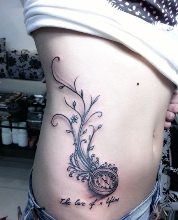 分享一款腰部时尚性感的蝶恋花纹身图案_腰部纹身图案大全_纹身图吧