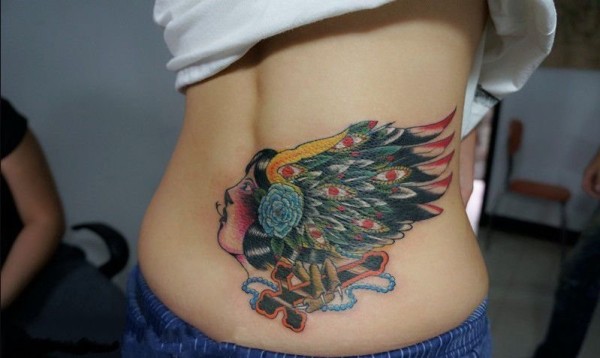 女性腰部莲花花纹刺青_腰部纹身图案大全_纹身图吧