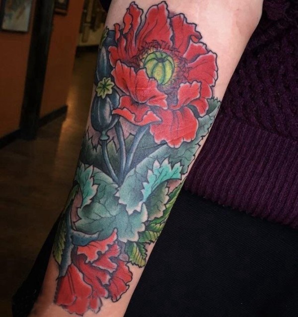 和实物非常相似的手臂花朵纹身图案