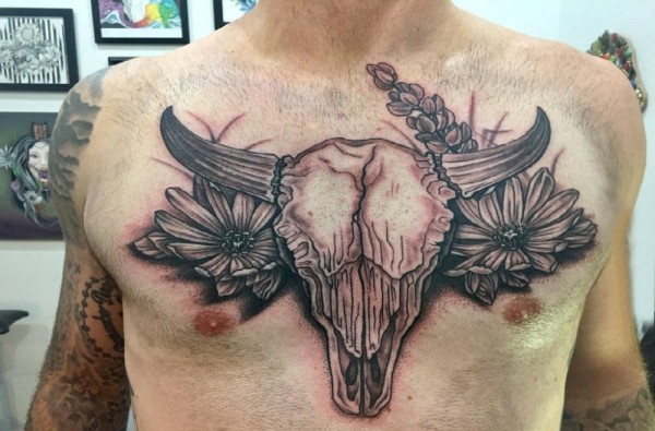 山羊头纹身撒旦 男生胸部羊头骨纹身图片