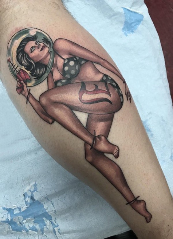 花腿纹身--一组大黑腿纹身图案作品欣赏
