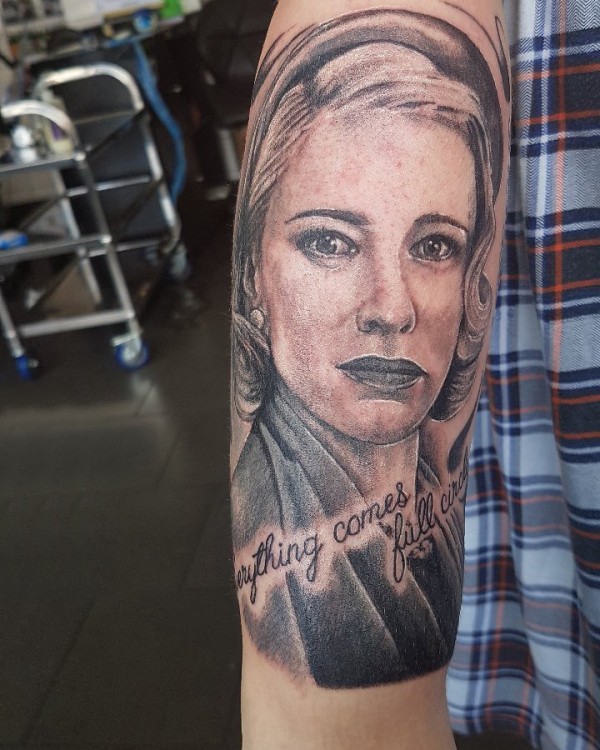 人物肖像纹身 男生手臂上女性人物纹身图案