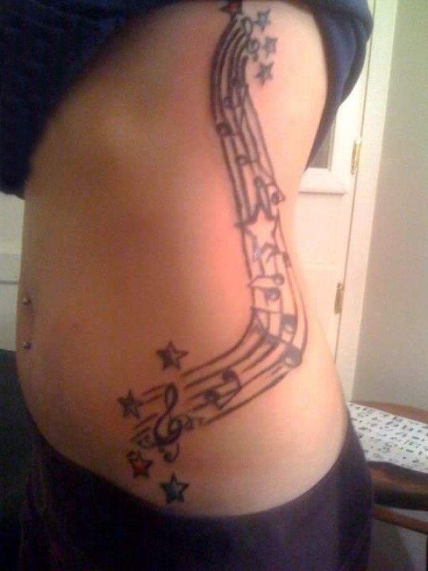 音符纹身 女生侧腰上黑色的音符纹身图片