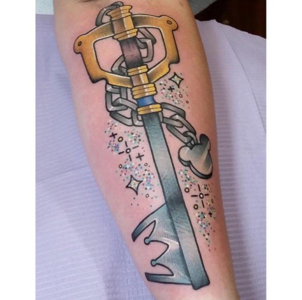钥匙纹身图案 男生手臂上彩色的钥匙纹身图片