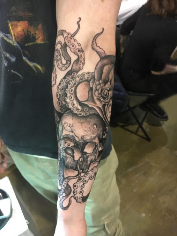 黑色章鱼纹身 男生手臂上黑色章鱼纹身图案