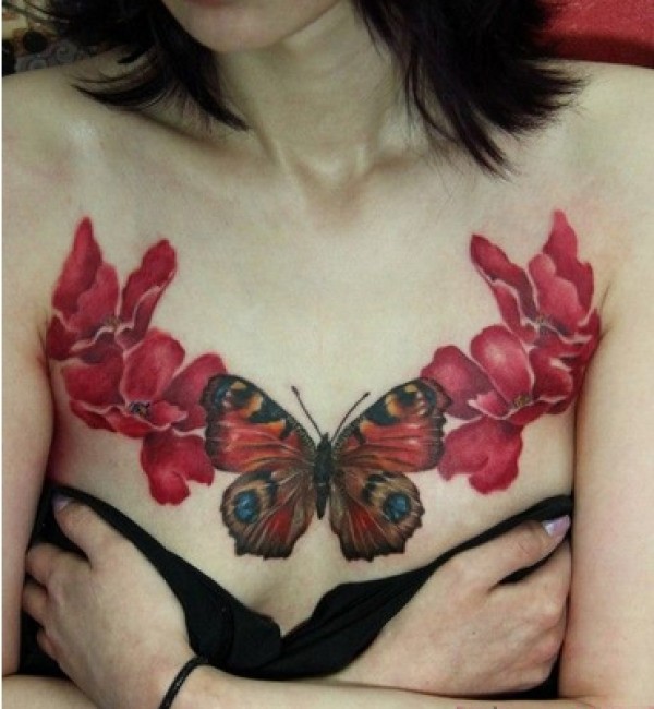 女性大花胸纹身_43张霸气漂亮的女性大花胸纹身图案作品
