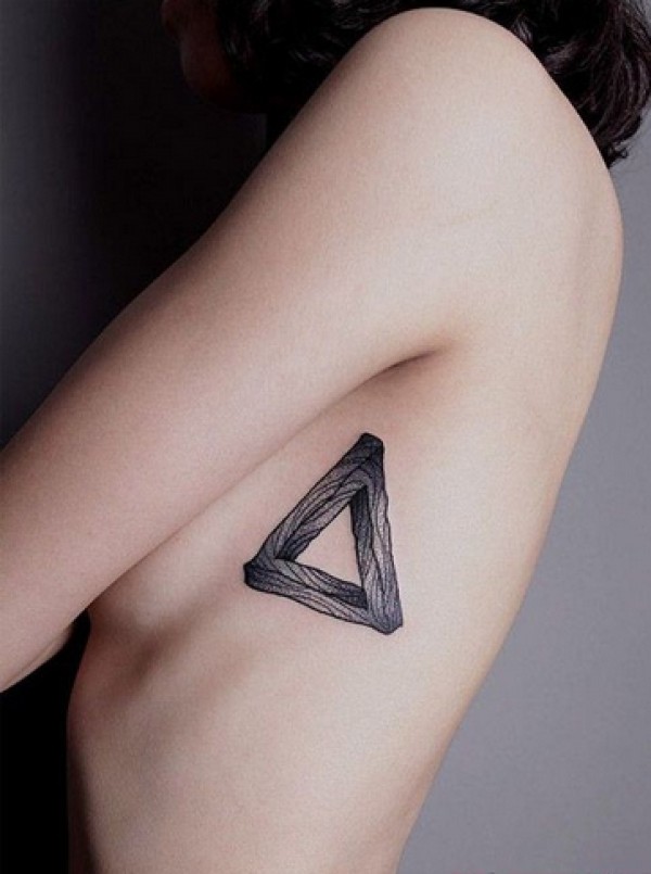 简约黑白胸侧纹身