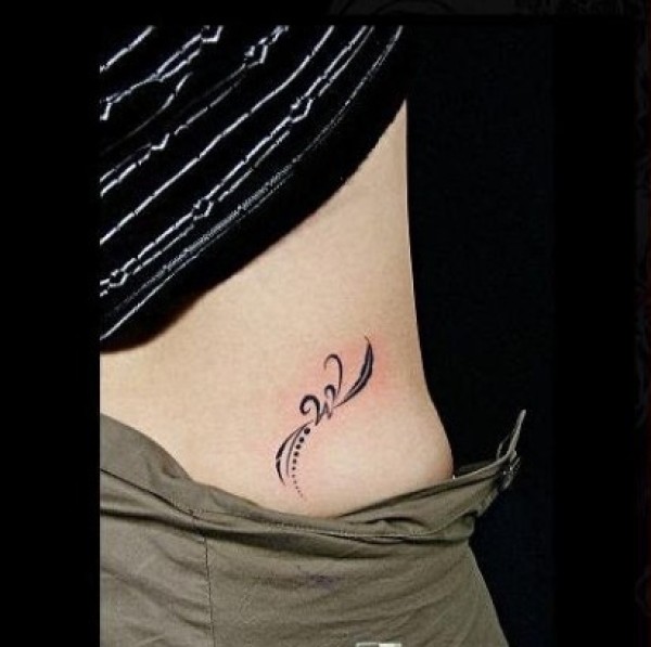 分享一款腰部时尚性感的蝶恋花纹身图案_腰部纹身图案大全_纹身图吧