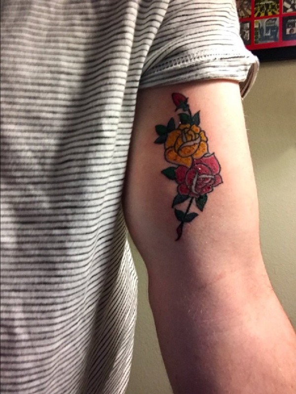 文艺花朵纹身 女生手臂上彩色纹身花朵纹身图片