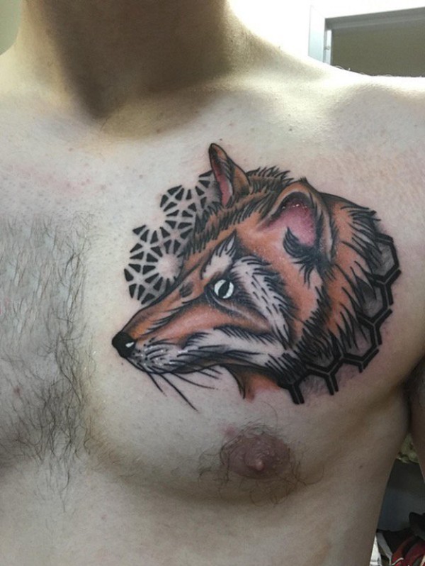 彩色狐狸纹身 男生胸部彩色狐狸纹身图片