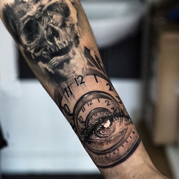 男人大臂黑白彼岸花骷髅_黑白纹身图案大全_纹身图吧