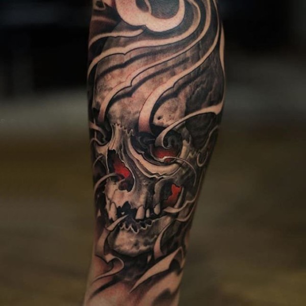 男人大臂黑白彼岸花骷髅_黑白纹身图案大全_纹身图吧