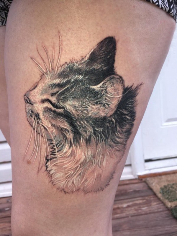 小清新猫咪纹身 女生大腿上小猫咪纹身图片