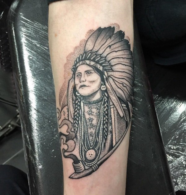印第安酋长纹身 男生手臂上黑色的印第安酋长纹身图片