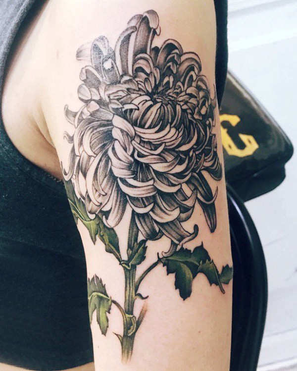 黑灰菊花纹身 女生手臂上黑灰菊花纹身图片