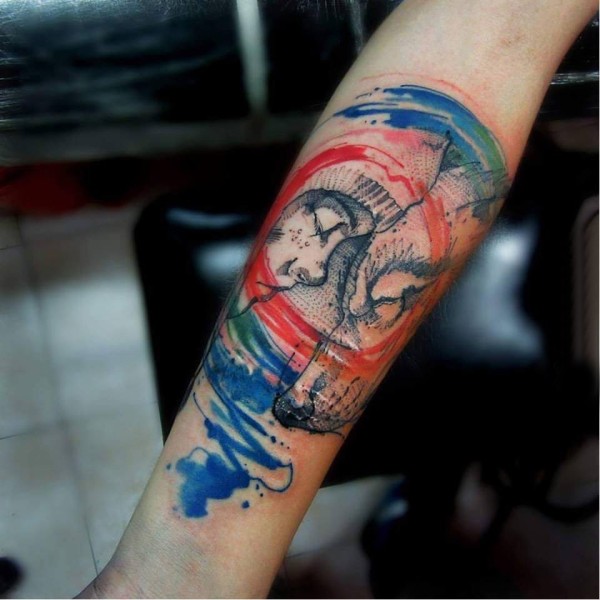 彩色泼墨纹身 多款小清新文艺纹身素描彩色泼墨纹身图案