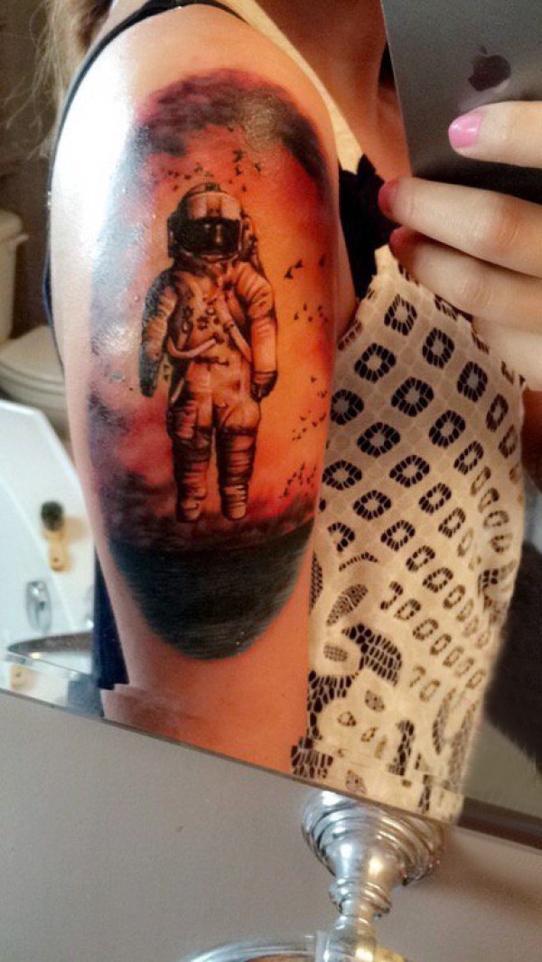 宇航员纹身图案 女生手臂上宇航员纹身图案