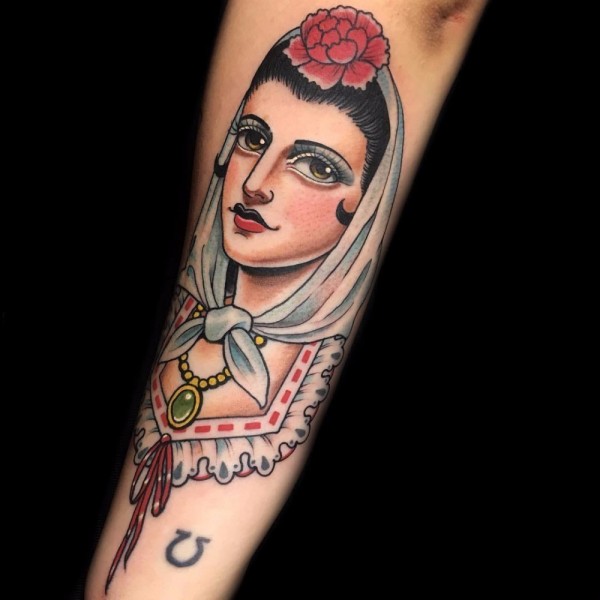 女生人物纹身图案 女生手臂上彩色的人物纹身图片