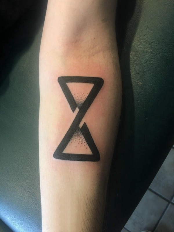几何元素纹身 男生手臂上黑色几何沙漏纹身图片