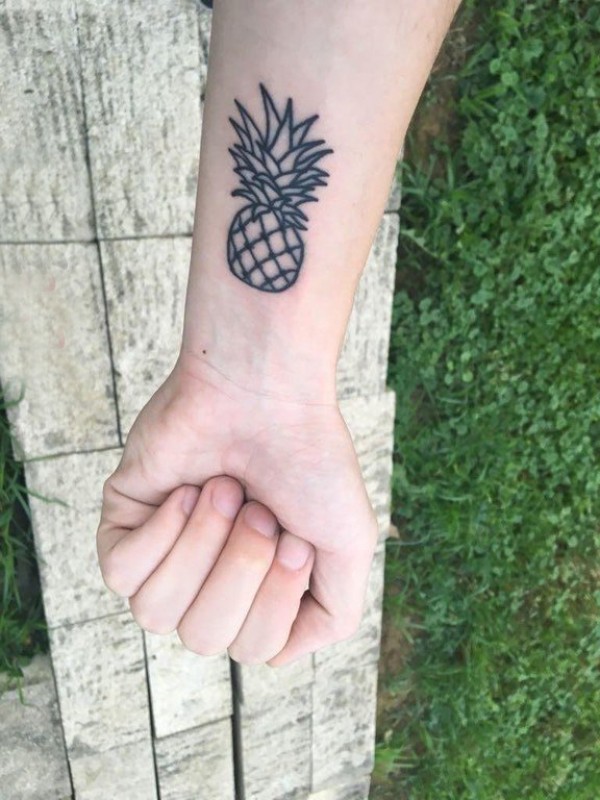 极简线条纹身 女生手腕上黑色的菠萝纹身图片