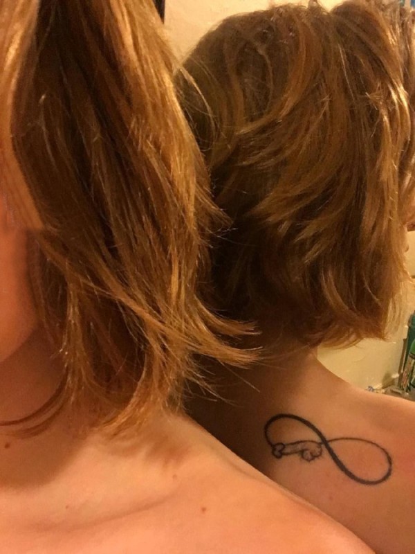 后肩纹身 女生后肩上黑色的无限大符号纹身图片
